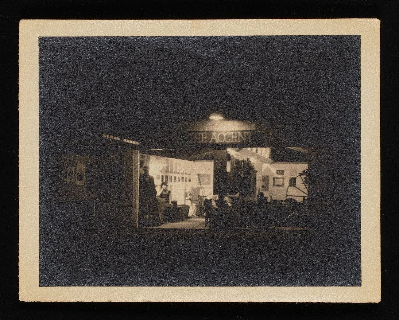 Jean Cohen inside The Accent Gallery, Lakewood, Maine 1951 Jean Cohen papers, 1928-2012. Archives of American Art, Smithsonian Institution.
